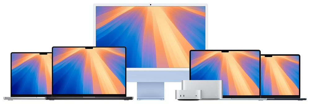 Alle MacBook- og iMac-modeller leveres med et kamera, en mikrofon og høyttalere av høy kvalitet samt de nyeste Wi-Fi-funksjonene.