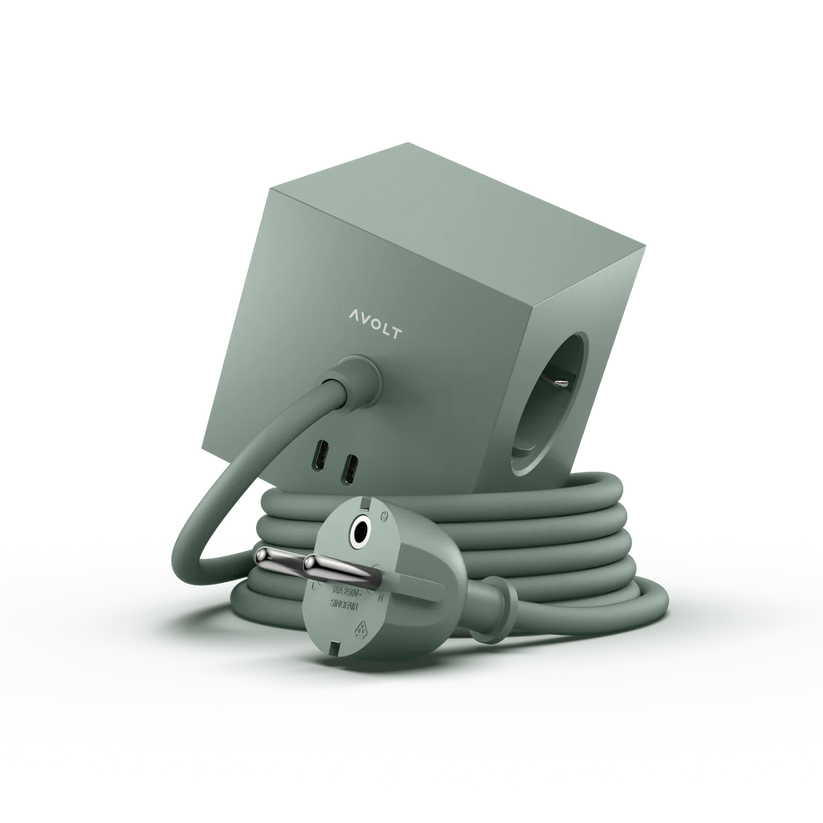 Avolt Square 1 30W Dual USB-C Stikkontaktforlenger - Eik Grønn