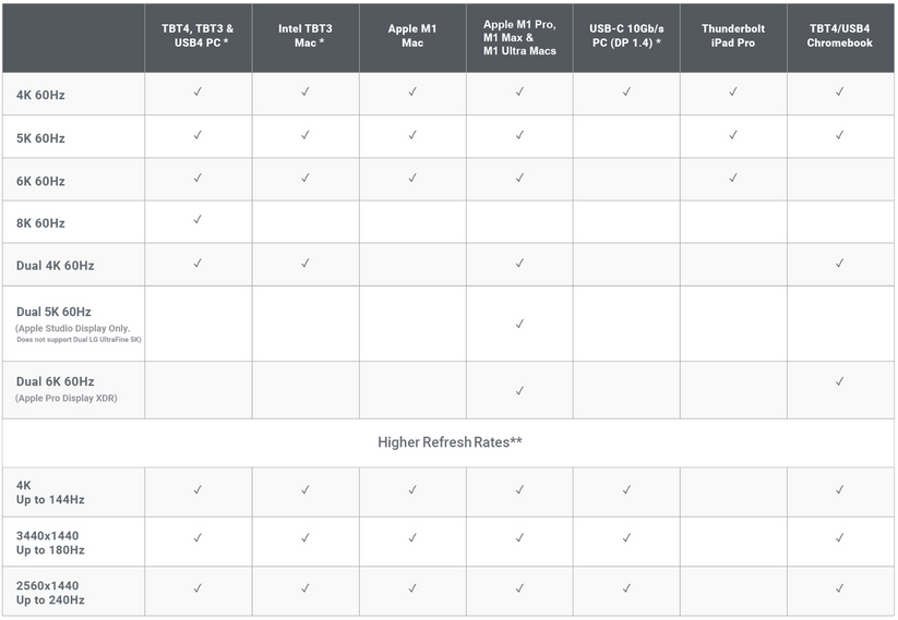 - Windows PC Thunderbolt 3- og Thunderbolt 4-brukere kan koble opp til doble skjermer.