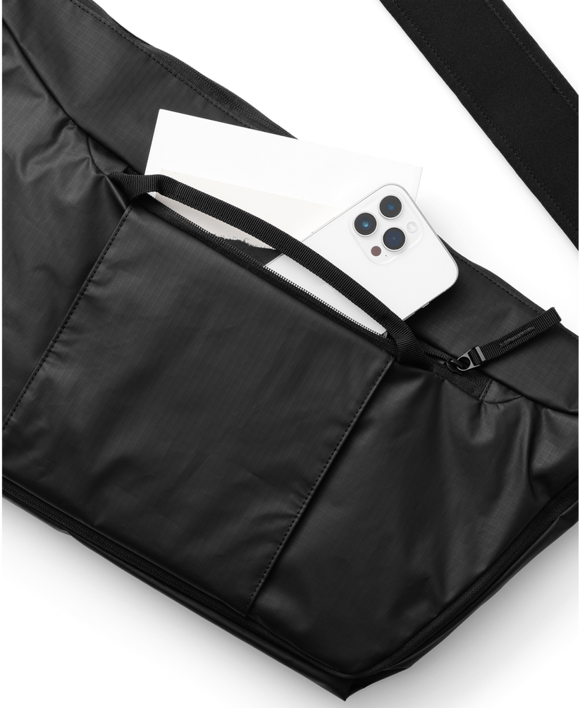 Denne vesken fra Db fungerer som en messenger bag hvor du kan bære rundt på mange av eiendelene dine. Den har et stort rom hvor du kan få plass til et kamera, hodetelefoner og andre lignende produkter. Den har inndelt to runde lommer på sidene i hovedrommet som gjør plass til en vannflaske eller lignende produkter. I ytterrommet får du plass til iPhone, lommebok og f.eks AirPods. Vesken har også små mesh-lommer på innsiden som lar deg organisere små produkter. Sleng den lett over skulderen og ta med utstyret ditt hvor enn du vil.