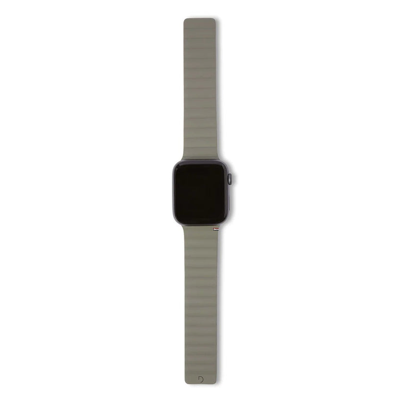 Denne reimen fra Decoded er laget av flytende silikongummi av høy kvalitet. Den har en sømløs tilkobling til Apple Watch og er også vann- og svettebestandig. Silikonreimen bruker et magnetsystem med skjult lukking for en enkel og sikker passform. Magnetsystemet gjør at stroppen passer til nesten alle håndledd og den lette vekten og ultratynne designet gir ultimat komfort, samtidig som silikongummien gjør stroppen slitesterk, men likevel myk på håndleddet.