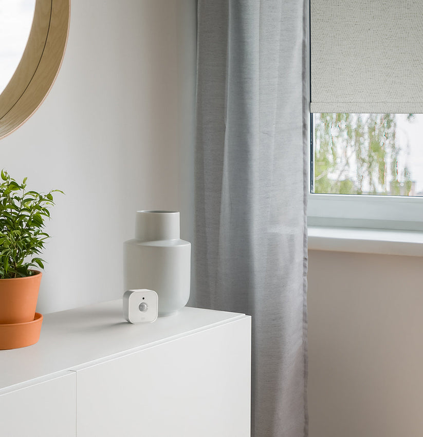 La din tilstedeværelse bringe ditt hjem til live. Kontroller lys og andre smarte apparater via bevegelse, og motta varsler når bevegelse oppdages! Takket være IPX3 vannmotstand kan Eve Motion komfortabelt benyttes både innendørs og utendørs. Eve Motion har et 120-graders synsfelt som spenner over 9 meters rekkevidde. Den er trådløs som tillater deg å plassere den hvor hen du ønsker.