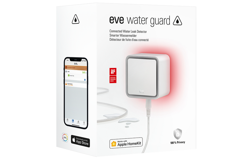 Med Eve Water Guard unngår du dyre vannskader og gir hjemmet ditt en vanntett beskyttelse. Ved å utnytte kraften og sikkerheten fra Apple HomeKit-teknologien kobles Eve Water Guard direkte til din iPhone, iPad eller hjemmehub, for eksempel en Apple TV eller HomePod via Bluetooth-teknologi – alt uten bro. Eve-tilbehør er designet for å beskytte personopplysningene dine – uansett om du går inn på Eve Water Guard lokalt eller eksternt, blir personopplysningene dine aldri gitt videre.
