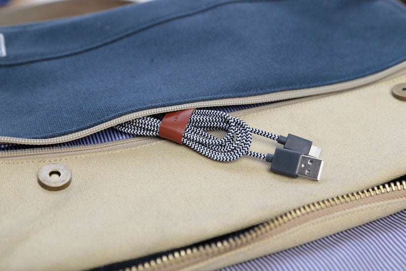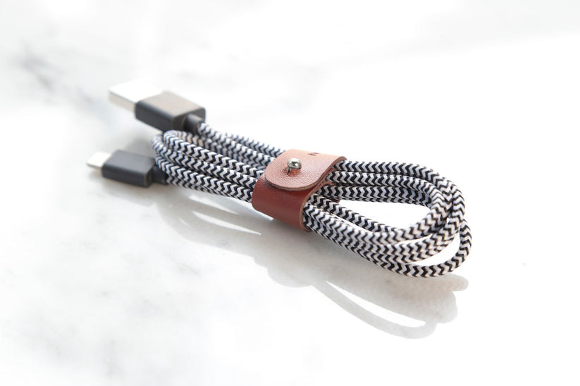 Med Native Union Belt Cable slipper du mer krøll på ledningen. Den stoffkledde ledningen er perfekt å ta med seg. Den er enkel å pakke sammen og holdes pent på plass av festespennen i lær. Ledningen er også meget robust, og er 6 ganger sterkere sterkere enn standard lightningkabler.