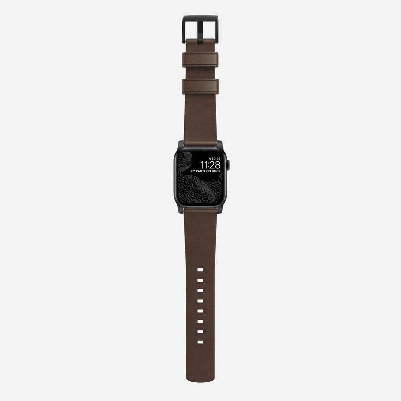 Designet for å gi Apple Watch et klassisk, men spennende nytt utseende. Laget av minimalt behandlet, vegetabilsk garvet lær fra ett av Amerikas eldste garverier. Læret utvikler en vakker patina etterhvert som det brukes.