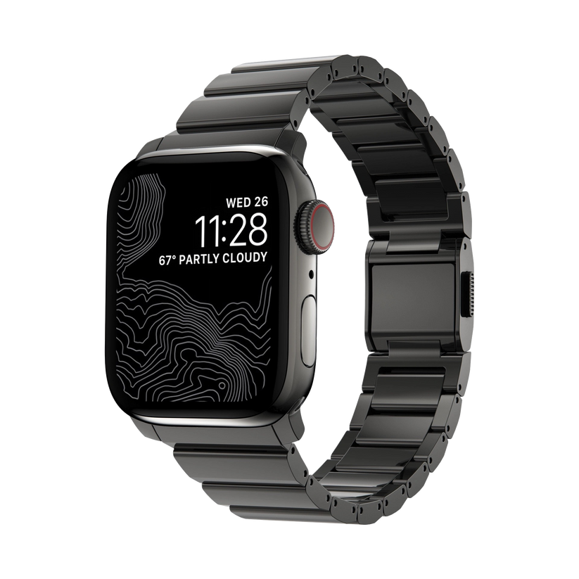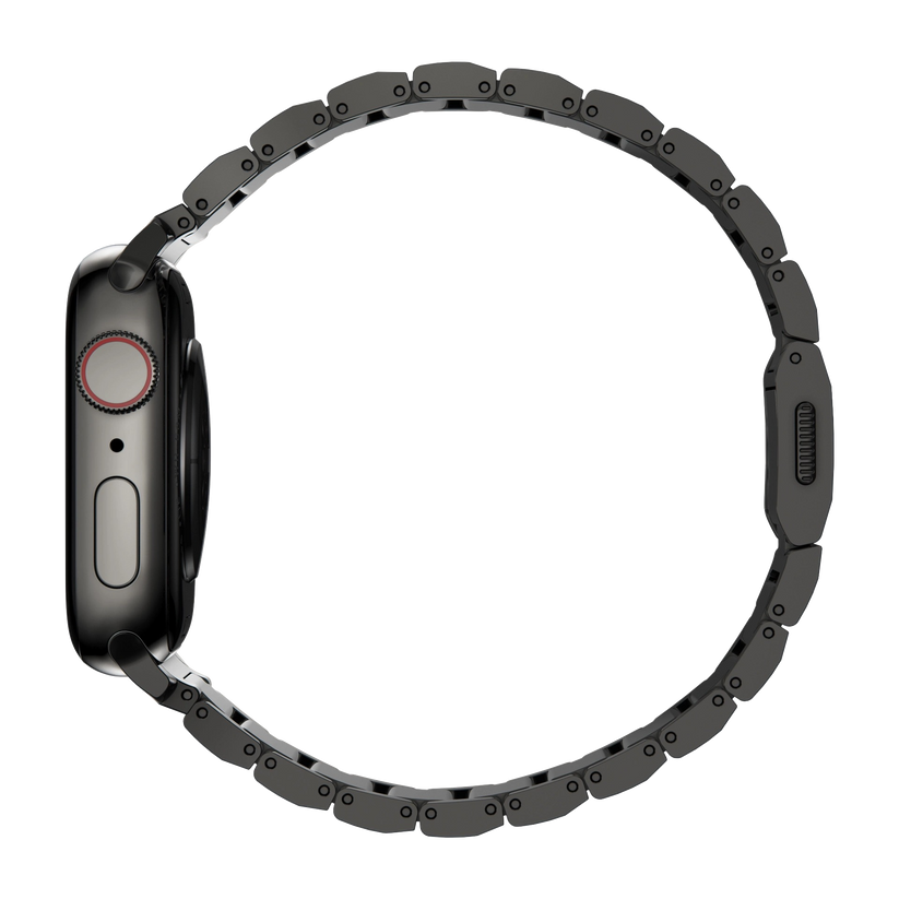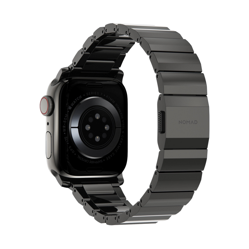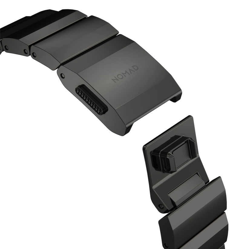 Denne reimen fra Nomad er laget av høykvalitets rustfritt stål og et avansert diamantlignende karbonbelegg. Den er konstruert for å være så robust som mulig samtidig som det gir deg elegansen og holdbarheten til et klassisk armbånd av metall. En ultratynn, spesialdesignet lås gjør at reimen enkelt kan åpnes og lukkes sikkert med kraften fra magneter.