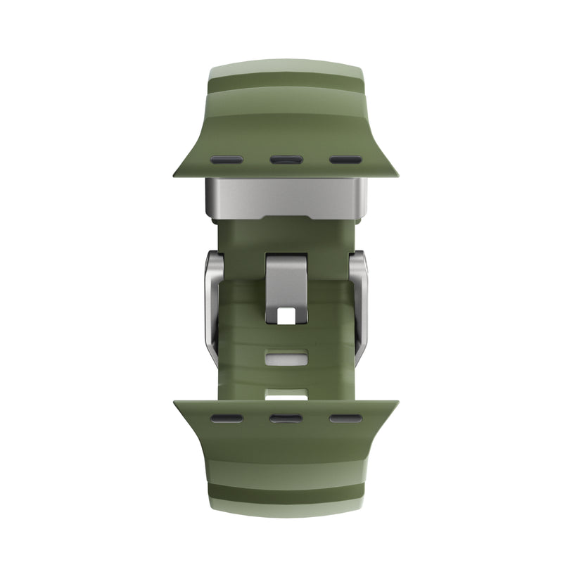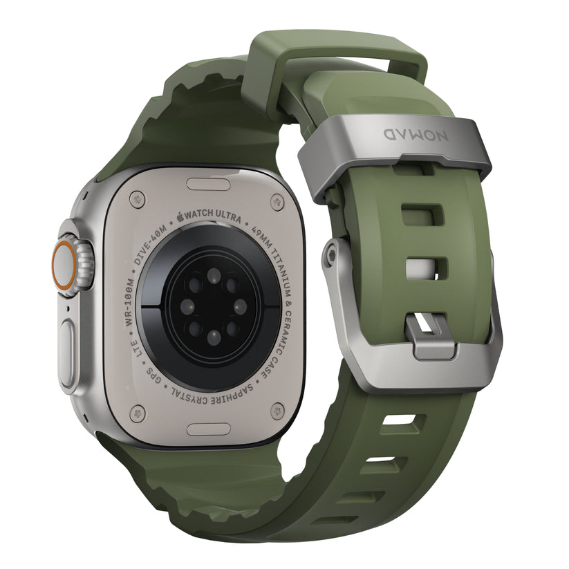 Rocky Point Bands ultratøffe FKM-kropp er 100 % vanntett og revner ikke under tøff behandling, noe som gjør den til den perfekte reimen for selv de mest krevende eventyrene. Den passer perfekt opp mot Apple Watch Ultras bredere ramme mens titan-låsene matcher klokkens finish perfekt. Reimens stoff er jevn og lett, og du kjenner knapt at du har den på deg. En z-formet overgangsseksjon tett rundt håndleddet beskytter mot svette og fuktighet.