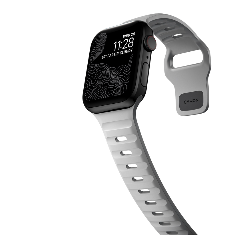 FKM-gummien på Sport Strap gir utmerkede balanse mellom komfort og holdbarhet. Gummiens naturlige fleksibilitet gjør at stroppen lett kan hvile rundt håndleddet ditt, og motstandsdyktigheten mot oljer gjør det raskt å tørke av etter en treningsøkt