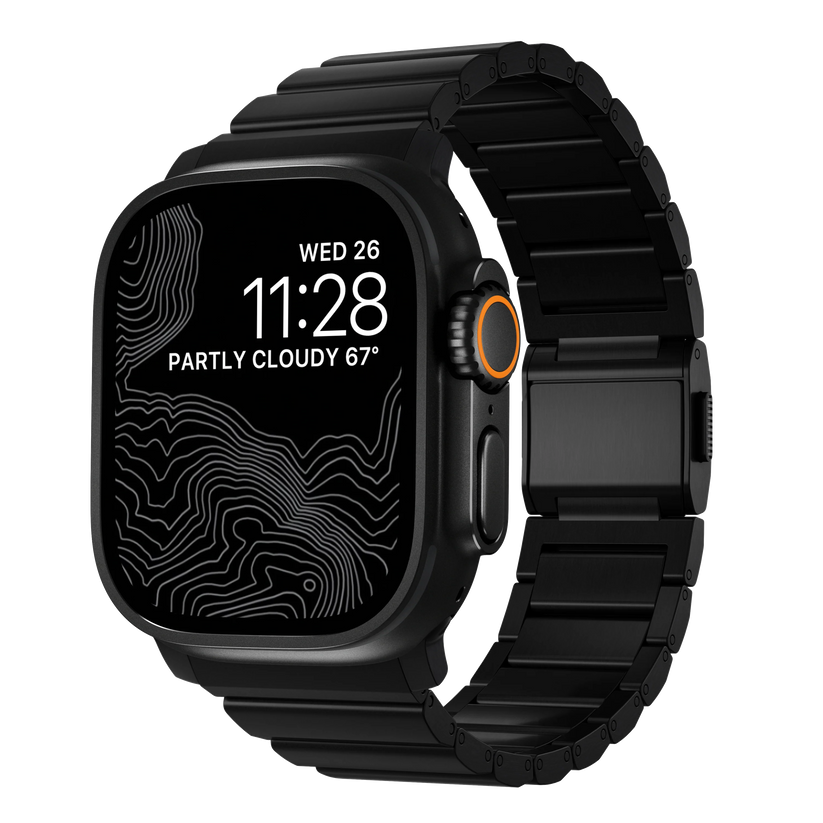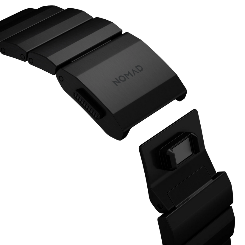 Oppgrader din Apple Watch med denne reimen laget av titanium fra Nomad. En slank, moderne og ekstremt robust reim i klasse 5 titan som kombinerer minimalistisk eleganse med teknisk perfeksjon. Hvert ledd og spenne er presist maskinert for å sitte komfortabelt på håndleddet, mens den diamantlignende karbon-(DLC) overflaten beskytter mot riper og slitasje. Den magnetiske låsemekanismen, drevet av kraftige neodymmagneter, gjør åpning og tilpasning både rask og sikker, uten behov for tradisjonelle pinner eller verktøy. Medfølgende verktøy gjør det enkelt å justere lengden til håndleddsstørrelser mellom cirka 130 og 225 mm, slik at lenken passer perfekt. Til tross for sin førsteklasses kvalitet og solide konstruksjon, forblir vekten overraskende lav – slik at du kan bære stil og funksjonalitet uten å få følelsen av å ha noe klumpete på deg.