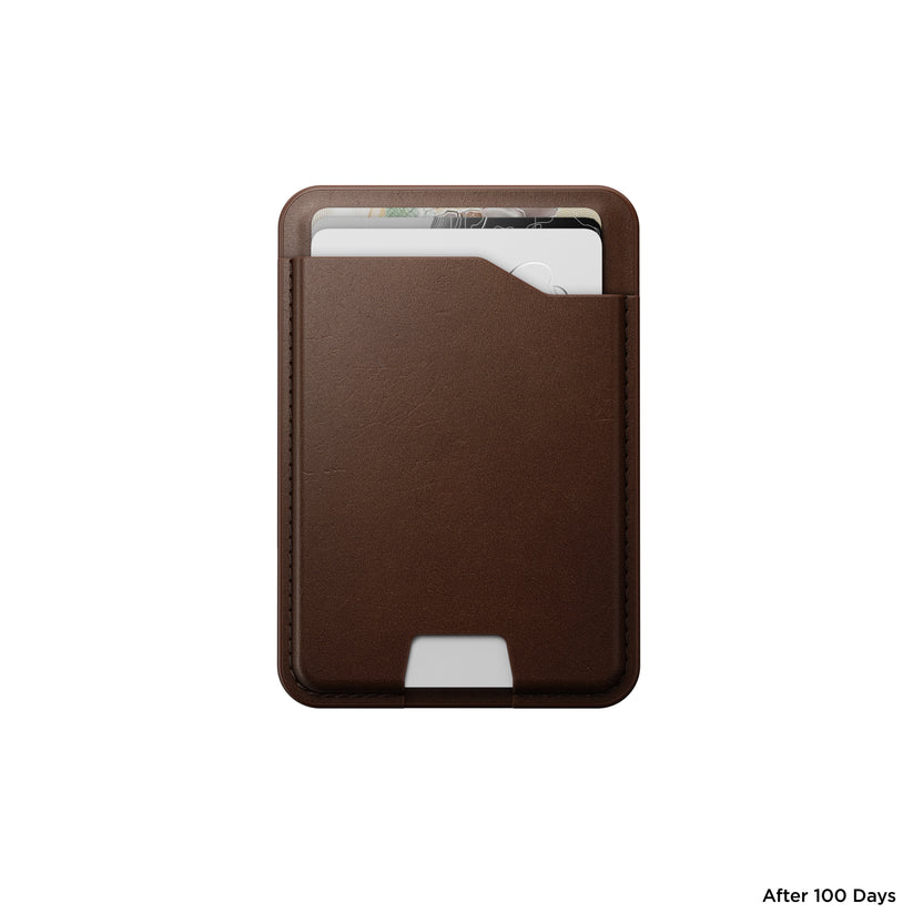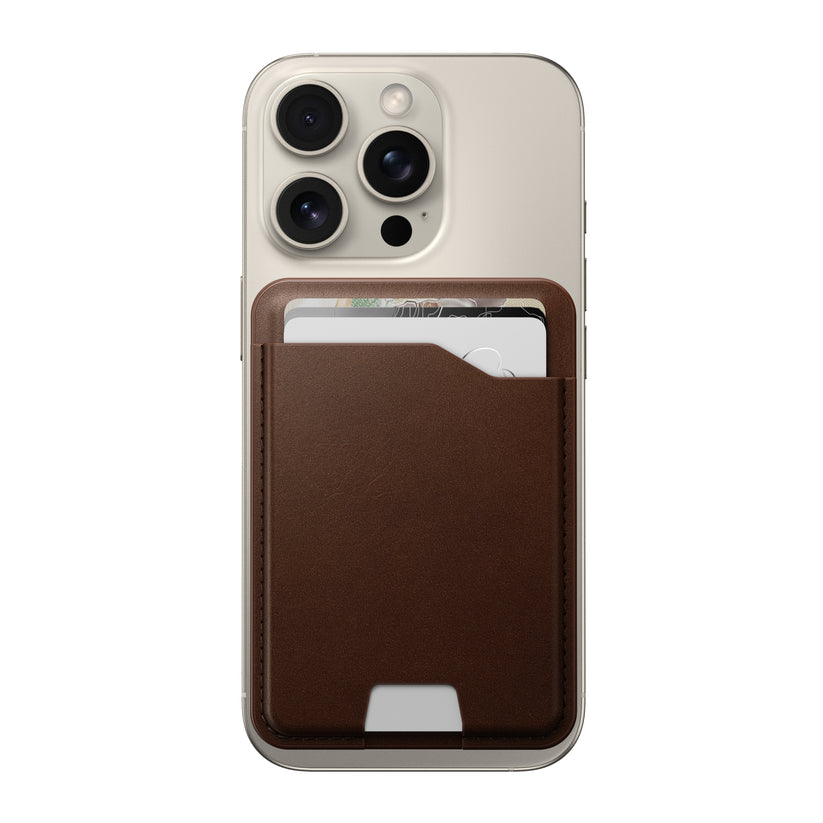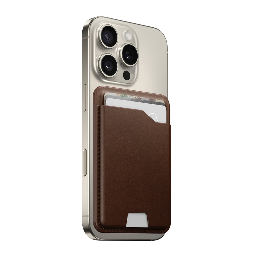 Opplev eleganse og funksjonalitet i ett med denne slanke kortmappen i Horween-lær fra Nomad. Den kobles sikkert til iPhonen din via MagSafe, åpner for sporing via Apple Find My-appen og gir deg fem måneders batterilevetid etter full lading. Kortmappen rommer 1–4 kort takket være en integrert fjærmekanisme, og påvirker ikke muligheten til trådløs lading – enten det er via Qi eller MagSafe. Det amerikanske, vegetabilsk garvede Horween-læret får en vakker patina over tid, og gir deg et personlig preg - alt pakket inn i et ultratynt, lett design på kun 47 g.
