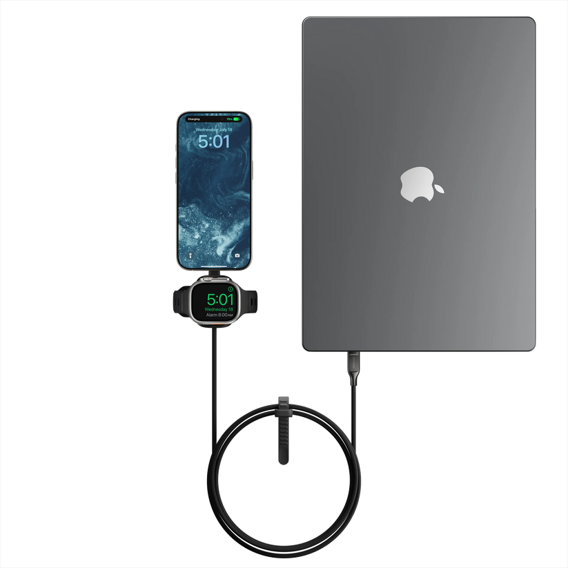 Lad alt, hvor som helst med den første i sitt slag med denne ladekabelen for Apple Watch og USB-C-enheter. Med en innebygd Apple Watch-ladepuck og USB-C-kontakter, lader denne allsidige kabelen dine Apple Watch, AirPods og USB-C-enheter raskt fra én enkelt kabel – perfekt for reise eller hverdagsbruk. Den er laget av forsterket kevlar som beskytter kabelen slik at du kan bruke den i lang tid. Den støtter opptil 100W lading og har en liten spenne for enkel organisering.