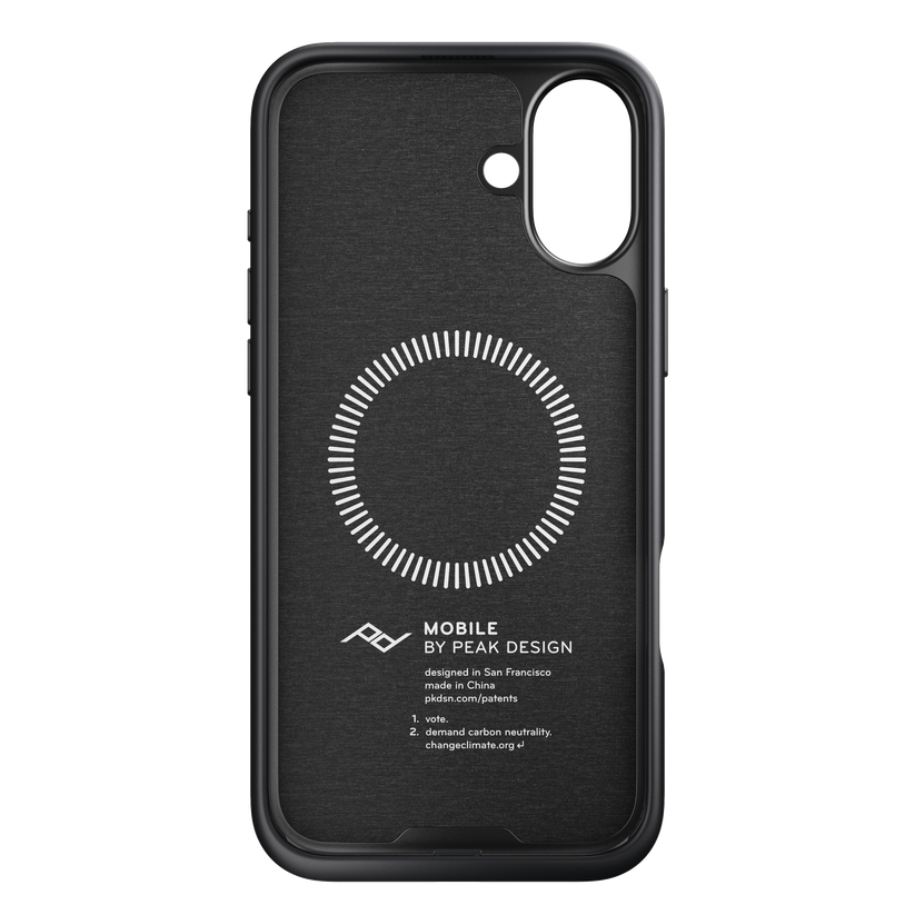 Et Magsafe-kompatibelt iPhone deksel med den perfekte balansen mellom slankhet, smart estetikk og beskyttelse, pluss at den kobles briljant til hele Peak Design Mobile Ecosystem. Dekselet har en slank 2,4 mm tykk profil og beskyttende støtfanger av gummi, alt pakket inn i et vakkert nylon lerretsskall. Men det som virkelig skiller dette dekselet fra andre er det magnetiske/mekaniske låsen som er innebygd rett inn i den. Peak Design kaller denne monteringsteknologien SlimLink™, og den er så rask og sikker at det grenser til magi.