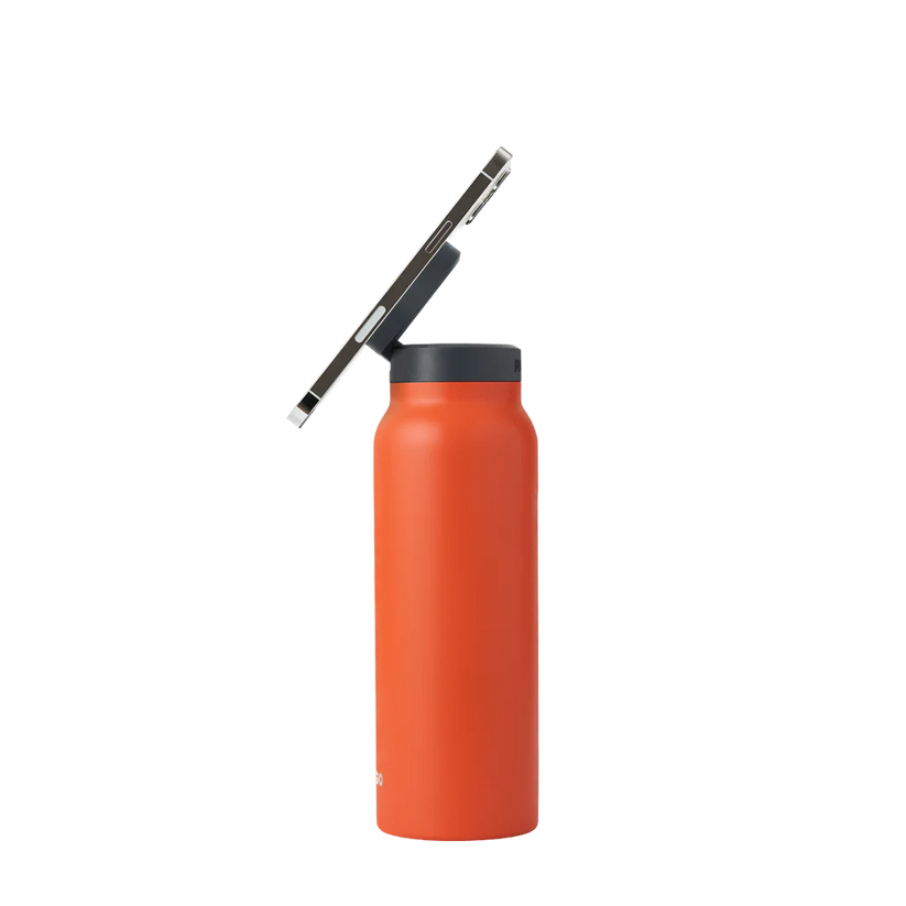 Vannflasken som magnetisk holder din iPhone! Denne vannflasken har en magnetisk MagSafe-ring på lokket slik at den kan benyttes som et stativ til din iPhone. Du trenger ikke å bekymre deg for å fylle på flasken hele tiden for at din iPhone skal holde seg på plass. Den fungerer nemlig uansett hvor mye, eller hvor lite vann som er igjen på flasken. MagSafe-ringen kan justeres til å finne den perfekte vinkelen, helt ned til 90 grader. Vannflasken kan trygt vaskes i oppvaskmaskinen.