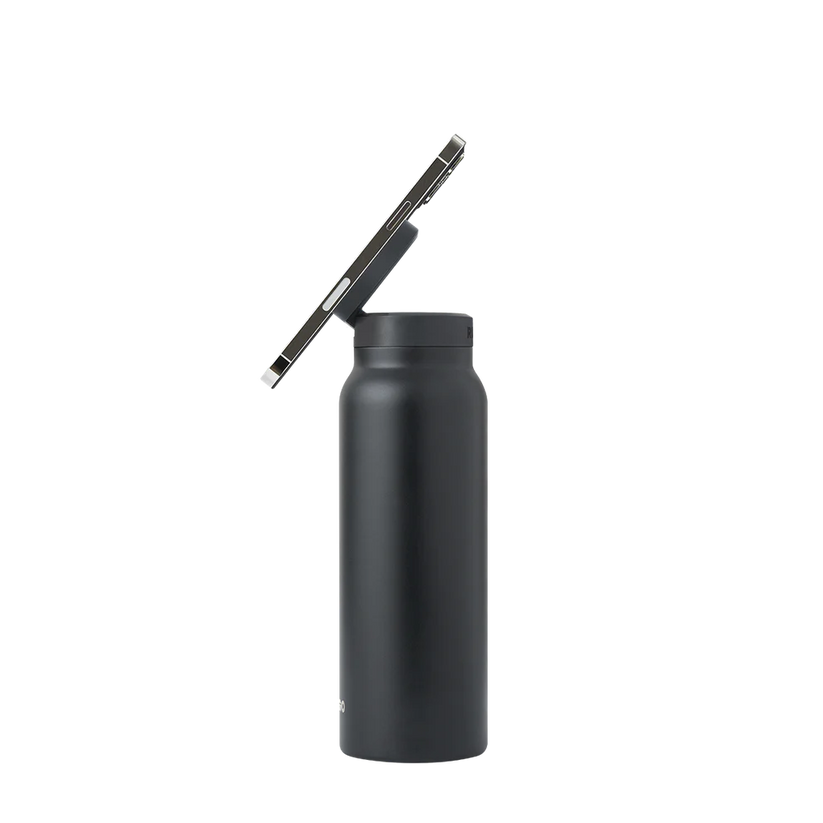 Vannflasken som magnetisk holder din iPhone! Denne vannflasken har en magnetisk MagSafe-ring på lokket slik at den kan benyttes som et stativ til din iPhone. Du trenger ikke å bekymre deg for å fylle på flasken hele tiden for at din iPhone skal holde seg på plass. Den fungerer nemlig uansett hvor mye, eller hvor lite vann som er igjen på flasken. MagSafe-ringen kan justeres til å finne den perfekte vinkelen, helt ned til 90 grader. Vannflasken kan trygt vaskes i oppvaskmaskinen.
