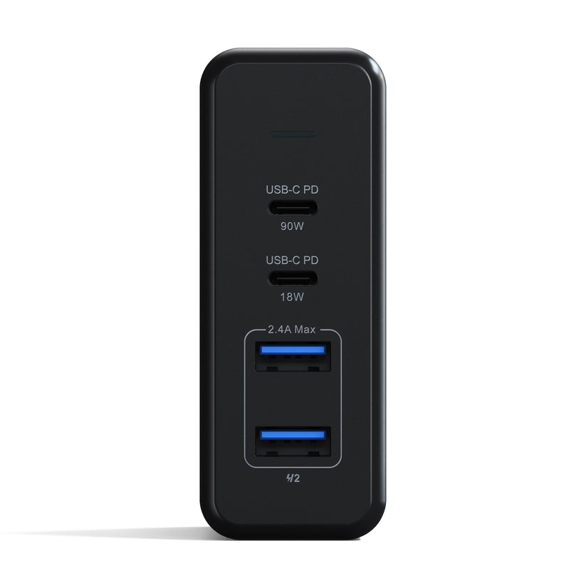 Oppgrader til proff lading med Satechi 108W Pro USB-C Desktop Charger. Med to USB-C strømleveringsporter, 90W og 18W, for å lade selv de mest kraftsultne Type-C-enhetene på full hastighet - uten å dele strøm. Utstyrt med ekstra USB-A-porter, konsoliderer laderen flere adaptere til en elegant, moderne enhet for kraftig lading på kontoret eller når du er på farten.