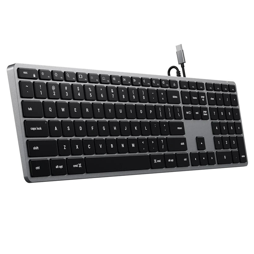 Satechi Slim W3 kablet tastatur er designet med Apple-brukere i tankene og inkluderer alle funksjonene du trenger, som et utvidet tastaturoppsett med numerisk tastatur, kablet USB-C-tilkobling, justerbare bakgrunnsbelyste taster og MacOS-funksjonstaster – alt med en elegant aluminiumsfinish.