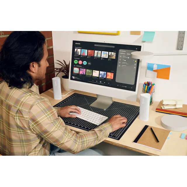 Roam 2 er raffinert og fleksibel og passer inn hvor som helst i hjemmet. Sett den på høykant for å spare plass eller legg den på siden for større stabilitet. Lyden tilpasses automatisk for å gi den beste lytteopplevelsen.