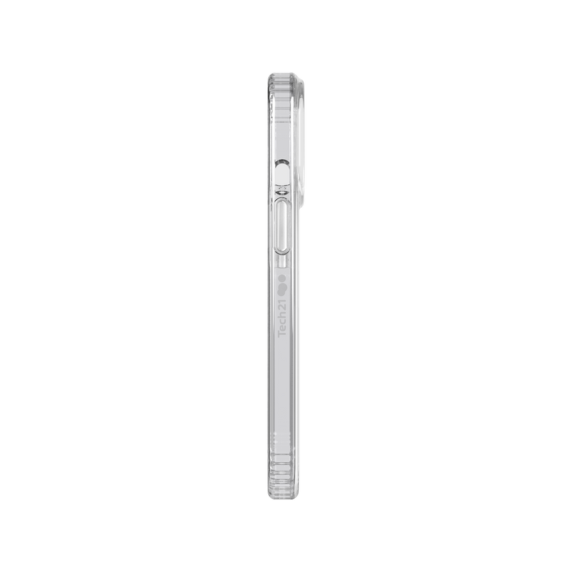 Tech21 EvoClear til iPhone 13 gir en effektiv beskyttelse mot støt og andre riper samtidig som den er krystalklar i gjennomsiktigheten. Den har egenskaper som antimikrobiell beskyttelse som reduserer bakterier med opptill 99,99% innen 24 timer, og et UV-bestandig stoff som redusere faren for gulning.
