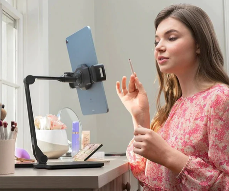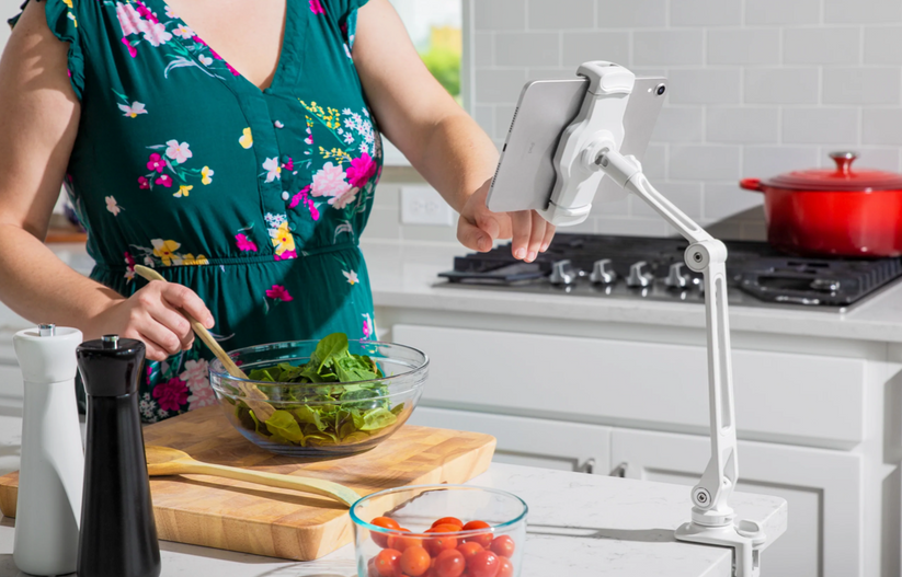 HoverBar Duo er et fleksibelt stativ som inkluderer en vektet stasjonær base og justerbar hylleklemme. Bruk det som et multiverktøy for å få utført kreativt arbeid på en iPad. Bruk den solide hylleklemmen på kjøkkenet for å lage matlagingsvideoer. Snu stativets nye QuickSwitch Tab og klikk den fleksible HoverBar-armen inn i skrivebordsbasen for å bruke stativet stående.